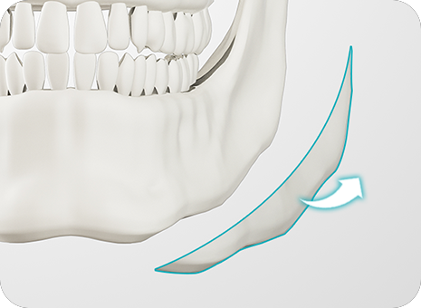 Soft, natural jawline without secondary angles by trimming only the necessary bone from the ear line to the front jaw.