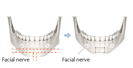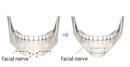 “T-shaped osteotomy” narrows the chin by removing the center bone segment.