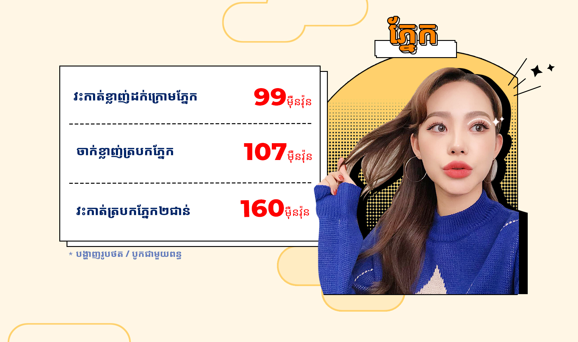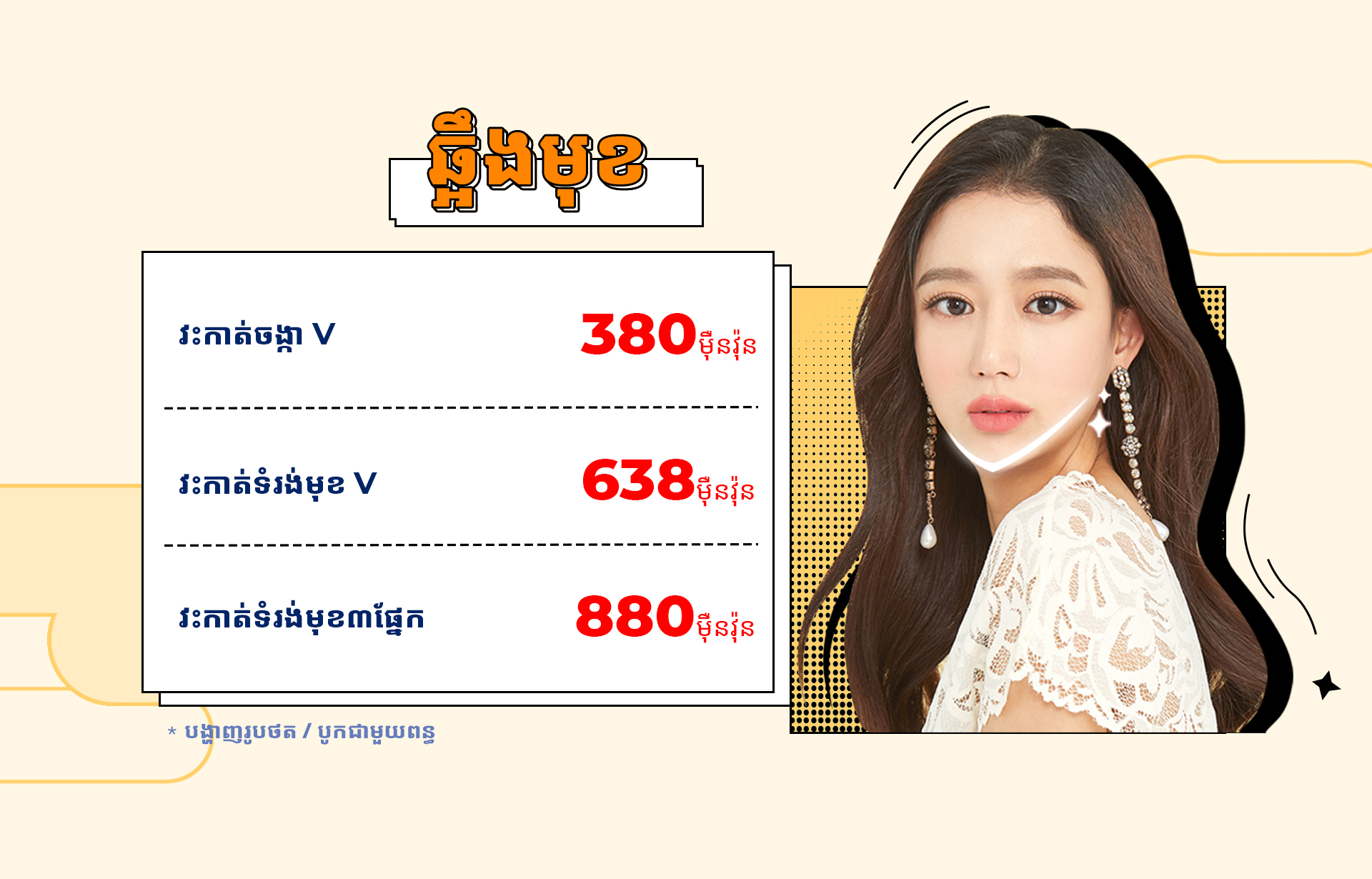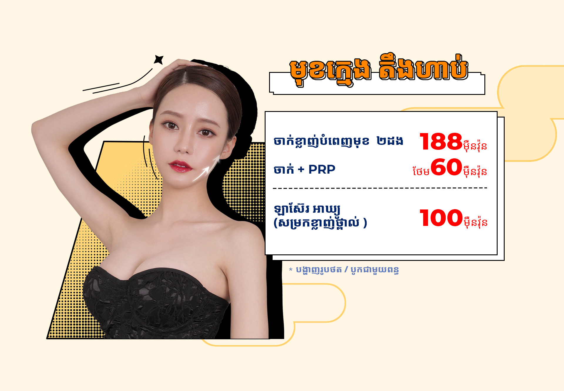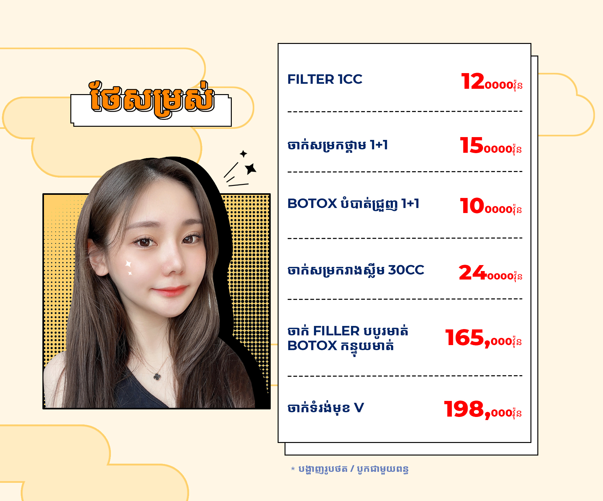 * *គ្រប់សេវា ចាក់ និងវះកាត់ មានល័ក្ខខ័ណ្ឌនៃការយល់ព្រមថតរូប |