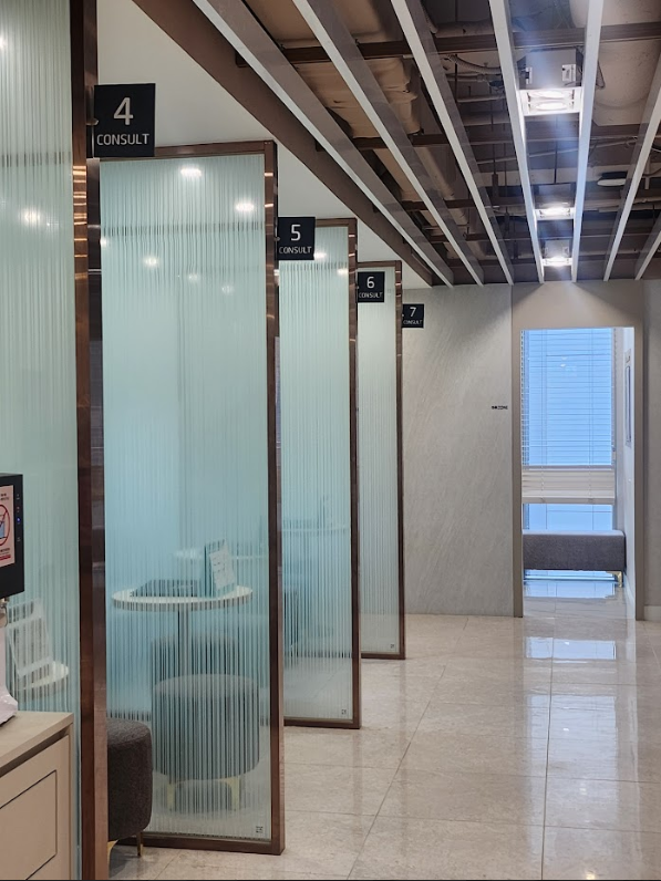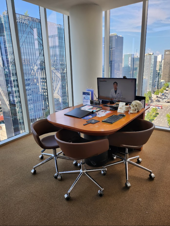 Each consultation room overlooks the cityscape — from the Han River to Namsan Tower — creating a relaxing atmosphere for patients.