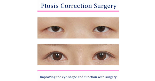 The level of ptosis can be determined by the distance between the eyelid and the pupil. Mild to medium ptosis cases can be resolved with non-incision ptosis correction surgery but for severe ptosis, incision method is advised. Both methods simultaneously create a double eyelid along with addressing the ptosis.