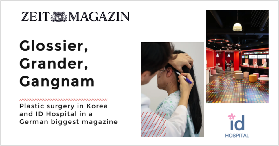 A famous magazine “Die Zeit” is considered to be one of the biggest and most reputable German newspaper and it’s known for its long history and extensive articles. One of its recent articles called “Glossier, Grander, Gangnam” is devoted to the topic of plastic surgery in Korea mentioning ID Hospital as one of the biggest plastic surgery clinics. The journalist of Zeit Magazine shared her ID Hospital experience.
