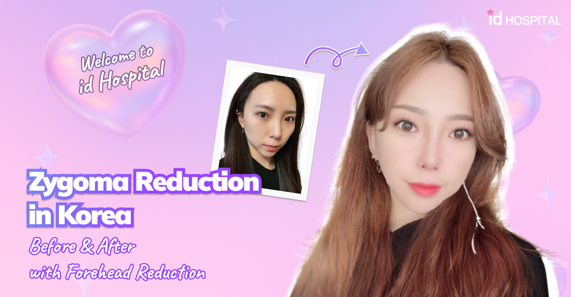 Her forehead scar is invisible, and her cheekbone reduction in Korea looks completely natural.